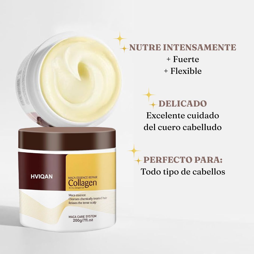 Descubre la transformación que tu cabello necesita con nuestra Mascarilla Capilar Premium con Colágeno. Una fórmula poderosa que combina aceite de argán, proteínas nutritivas y manteca de karité para reparar, hidratar y devolver la vida al cabello seco, dañado o quebradizo.